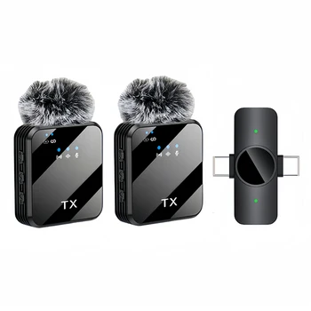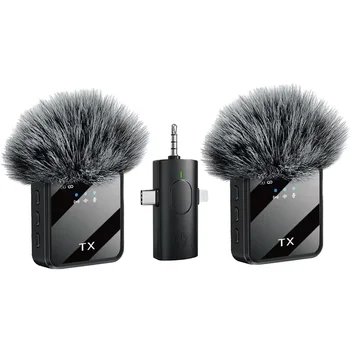 • Mini Dual Lavalier Wireless Phone Microphone Type C Connector 2in1 Lapel Wireless Mic Micro Tie Sans Fil for Video Recording