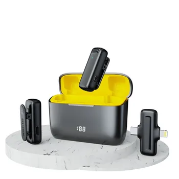 • J13 Pro One-to-Two Wireless Lapel Lavalier Microphone Noise Cancelling Digital Display Light-Weight C for Studio Live Streaming